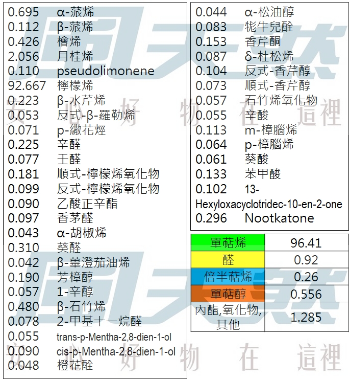 萃取部位/方式: 皮 / 壓榨