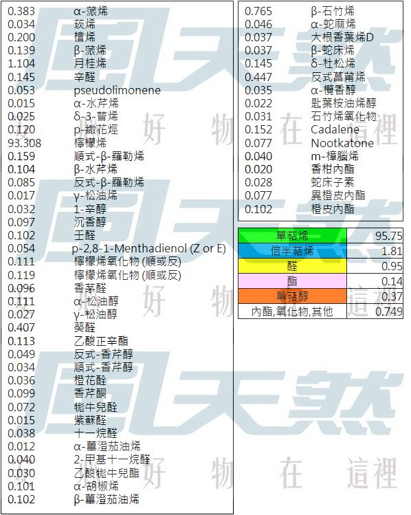 萃取部位/方式: 皮 / 壓榨